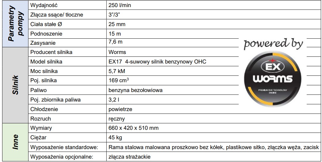 Opcjonalnie dostępny komplet złączy strażackich 3″ (2 sztuki) – cena 100 zł netto.
